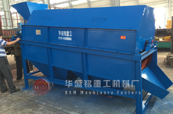 滾筒篩主要有電機、減速機、滾筒裝置、機架、密封蓋、進出料口組成。滾筒裝置傾斜安裝于機架上。電動機經減速機與滾筒裝置通過聯軸器連接在一起,驅動滾筒裝置繞其軸線轉動。當物料進入滾筒裝置后,由于滾筒裝置的傾斜與轉動,使篩面上的物料翻轉與滾動,使合格物料(篩下產品)經滾筒后端底部的出料口排出,不合格的物料(篩上產品)經滾筒尾部的排料口排出。由于物料在滾筒內的翻轉、滾動,使卡在篩孔中的物料可被彈出,防止篩孔堵塞。